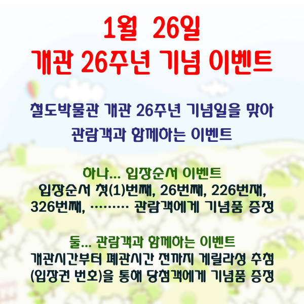 철도박물관이 올해로 26주년을 맞이 했습니다.