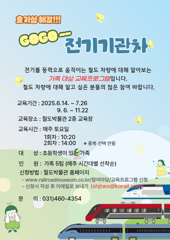 안녕하세요 철도박물관에서는 가족 교육 프로그램을 아래와 같이 운영합니다.