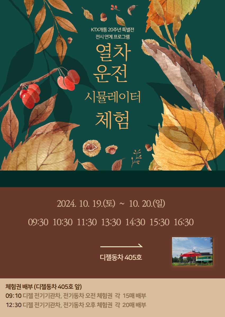 안녕하세요 KTX개통 20주년 특별전시 연계 프로그램으로 열차 운전 시뮬레이터 체험이 진행됩니다.