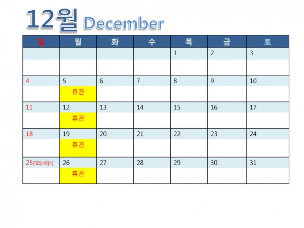 2016년 12월 휴관일 알림